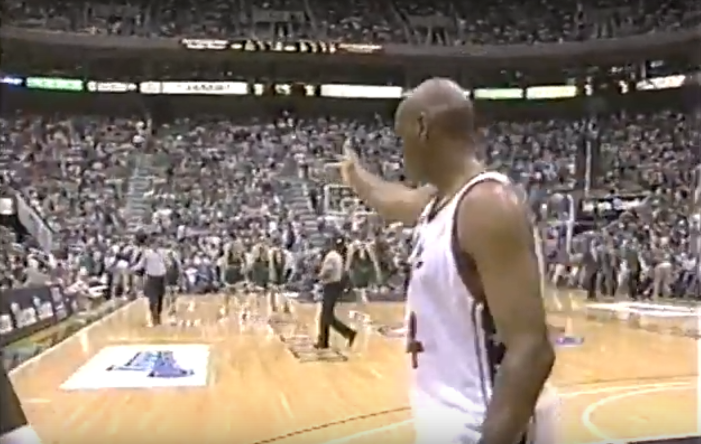 Kto był blisko całego zajścia (widać to wszystko lepiej w dłuższym fragmencie transmisji z tamtego meczu), ale gdy wmieszał się w nie Heal, nagle zniknął? Gary Payton. Dla niego także, to nie było pierwsze rodeo z gościem o tlenionych włosach i ksywie „The Hammer”.