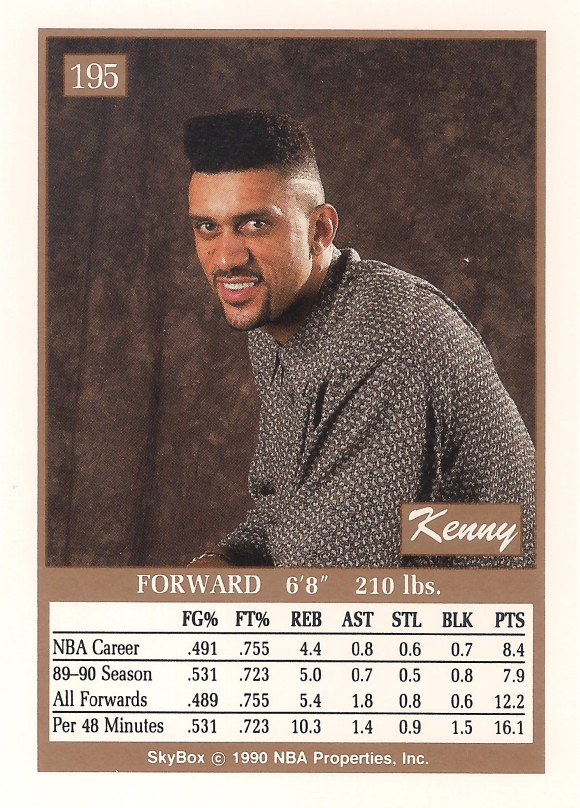 Fun Fact: Śniło mi się ostatniej nocy, że na wczasach w Sopocie spotkałem Kenny’ego „Sky” Walkera. Cały dzień siedział na balkonie jednego z ośrodków wypoczynkowych pijąc piwo. Gdy zacząłem z nim rozmawiać okazało się, że jest Polakiem, naprawdę na nazwisko ma Walczak i mieszka na warszawskim Żoliborzu. Poszedłem odwiedzić go w pokoju, żeby zapytać czy możemy się umówić na późniejsze spotkanie w Warszawie, na którym chciałem go poprosić o autograf na widocznej powyżej karcie. Niestety Walker okazał się lekkim bucem i numer telefonu i adres podał mi w formie rysunkowych rebusów, których nie potrafiłem rozszyfrować. Na jego korzyść działał jednak fakt, że w pokoju miał stertę komiksów i kaset wideo z kreskówkami o transformersach. Aha – i był to późny Kenny Walker, bez flat topa, taki z czasów gry w Washington Bullets. To był jeden z moich najnormalniejszych snów w ostatnim czasie.