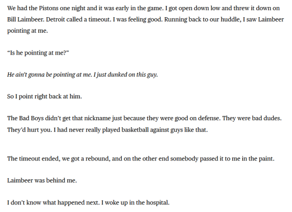 2:45 – MVP tego zestawienia, czyli Rumeal Robinson próbujący zablokować rzut kelnerski Dennisa Rodmana butem rzuconym z linii rzutów za trzy.